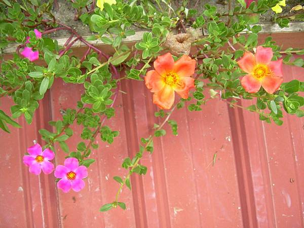 上禮拜去買東西特地繞到那戶種彩虹馬齒莧的人家去看花長怎樣,我只是騎過去沒有停下來,因為我知道我只要一停下來手就會去摘它,所以不敢停望著花直接騎過去,一回頭眼光對上了一個人,原來是幫兇,幫我摘她鄰居的彩虹馬齒莧給我的阿婆,她看到我裂嘴微微笑跟我擦身走過,我也直笑跟她行注目禮但沒有停下來,目送她進門,原來她沒有忘記我,大概是想起那天的事,如果有停下來她問我是不是又來偷花的?我一定會告訴她,我是特地專程來看妳的