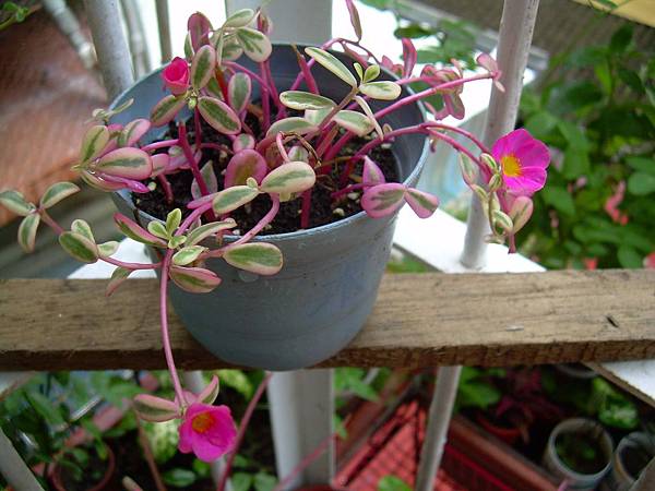 這是別人種的馬齒莧,一色一花盆,這樣也蠻好看的
